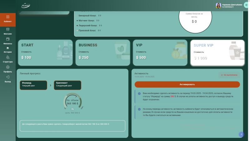 Разработана гибкая многоуровневая система мотивации, основанная на бинарной структуре и 4-х тарифных пакетах, с расширенной бонусной программой.