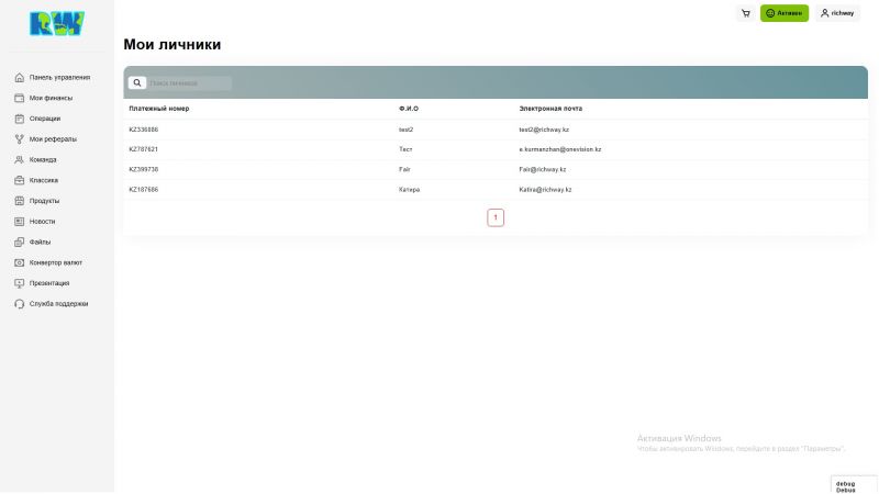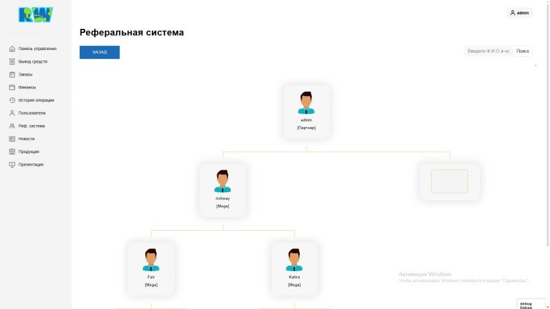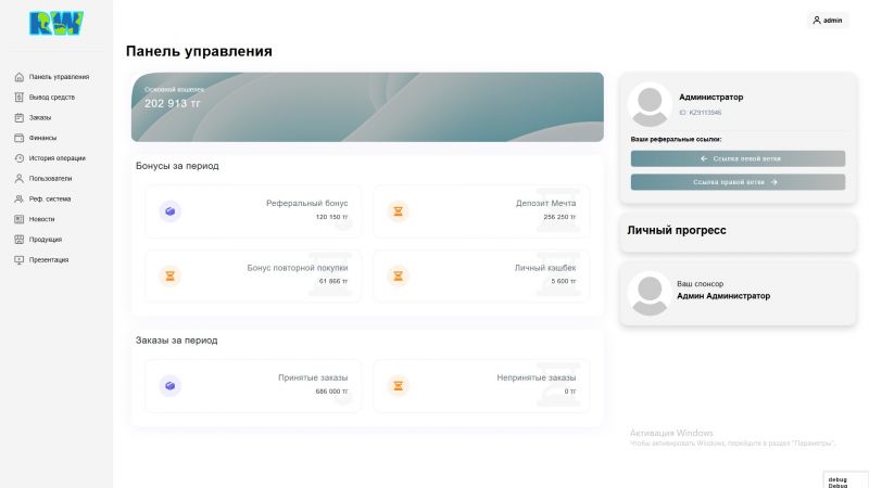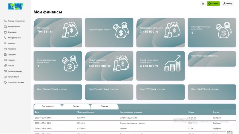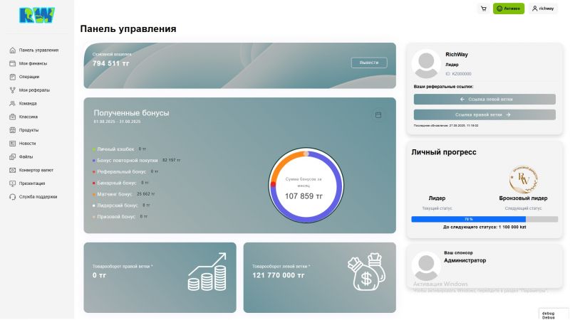 Richway.kz - это веб-платформа с бинарной маркетинговой системой, разработанная для построения партнерской структуры и автоматизации бизнес-процессов. Проект создан как инструмент для сетевого маркетинга, где каждый пользователь может выстраивать собственную сеть партнеров и получать вознаграждения в соответствии с бинарной моделью распределения.